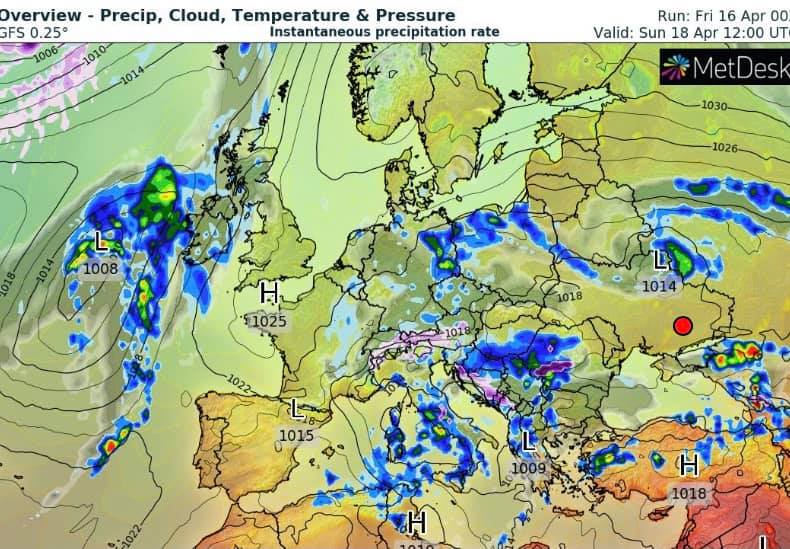 В воскресенье на северо-востоке Украины сформируется аккуратный "циклончик", который выльет дожди на Черниговскую, Сумскую и часть Киевской области. Возможно, зацепит больше нашего северного региона. На остальной территории будет сухо.