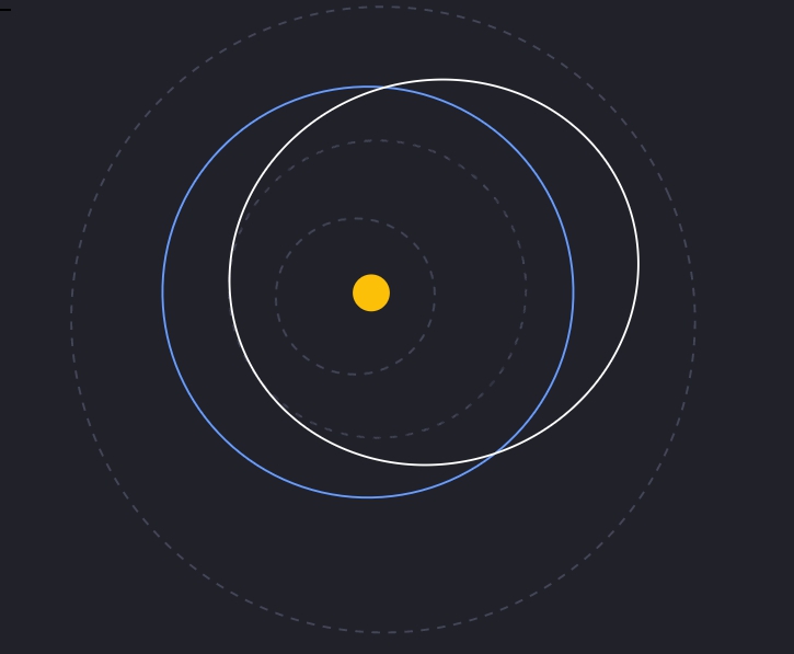 В ближайшей точке сближения с Землей он будет проходить на расстоянии 5,8 млн км, что более чем в 15 раз превышает расстояние от Земли до Луны.