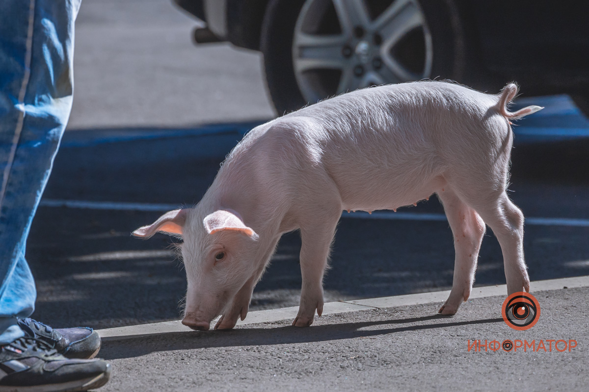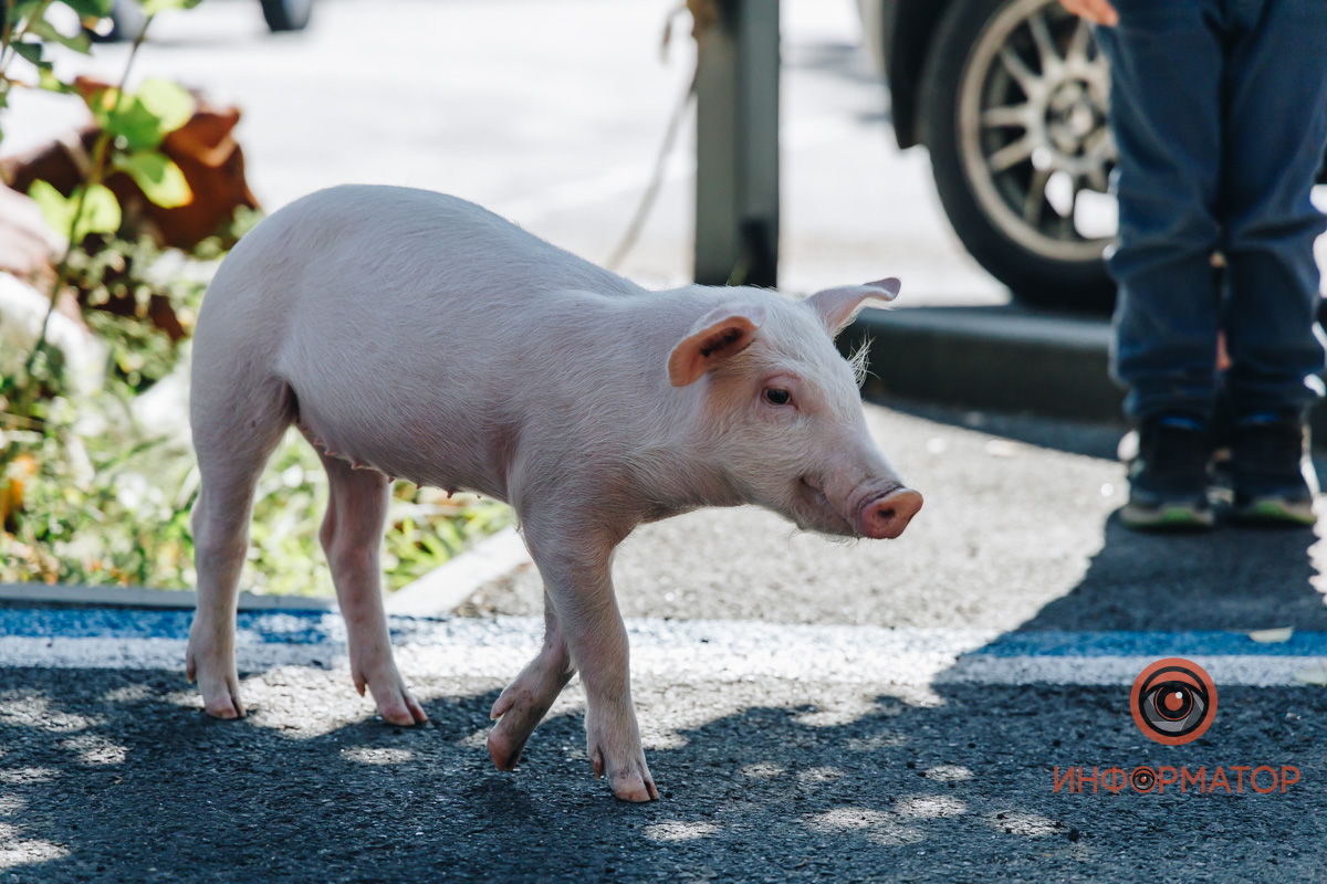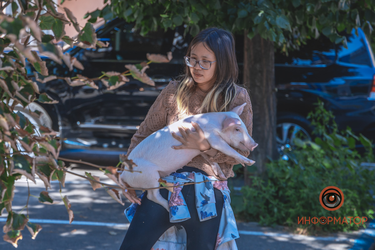 В центре Днепра американка выгуливала поросенка и теленка, которые живут с ней на съемной квартире