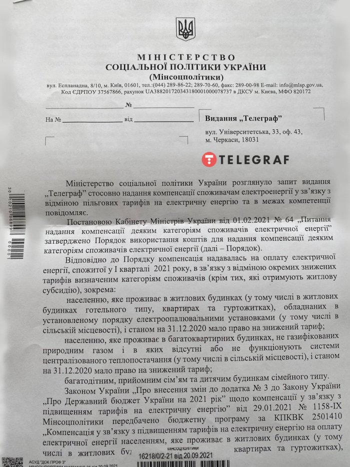 Это следует из ответа Минсоцполитики на запрос издания "Телеграф".