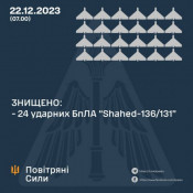 Сьогодні вночі в небі над Україною силами ЗСУ знищено 24 ворожих безпілотника