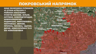 На Покровському напрямку наші захисники зупинили 43 атаки агресора у районах населених пунктів Шахове, Вільне, Котлине, Новопідгороднє, Новоекономічне, Родинське, Миролюбівка, Покровськ, Звірове, Промінь, Лисівка, Удачне, Дачне, Новоукраїнка та в бік Новопавлівки.