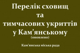 У Кам’янській міській раді оприлюднили оновлений перелік укриттів, які жителі міста можуть використовувати у разі повітряної тривоги чи іншої надзвичайної ситуації.