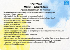 Ця програма — ваш шанс вийти за межі підручника і освоїти історичний матеріал по-новому. Ми об'єднали музейну експозицію з навчальним процесом, щоб: