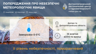 У ніч на 16 жовтня 2025 року в Кам’янському та по всій Дніпропетровській області очікуються заморозки від 0 до -5°C, — попереджає Дніпропетровський регіональний центр з гідрометеорології.