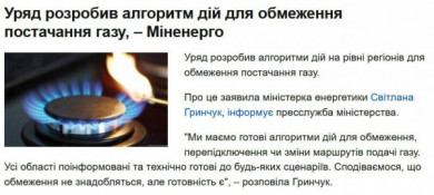 Уряд підготував алгоритм дій на випадок обмеження газопостачання через удари рф
