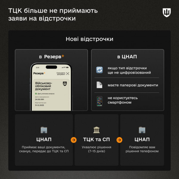 Зміни внесено до постанови Кабінету Міністрів №560. Вони передбачають автоматичне продовження більшості відстрочок, пріоритет оформлення в цифровому форматі через застосунок "Резерв+", а також подання документів у ЦНАП замість ТЦК.
