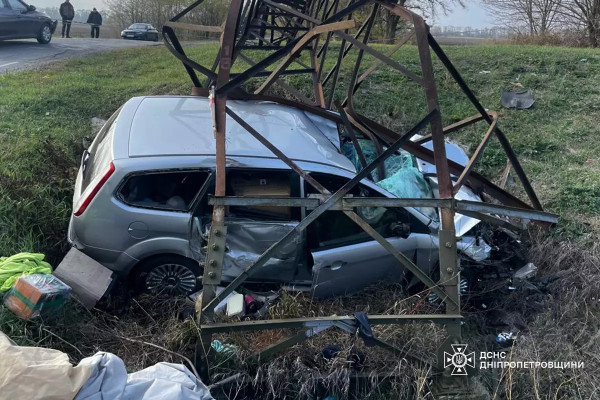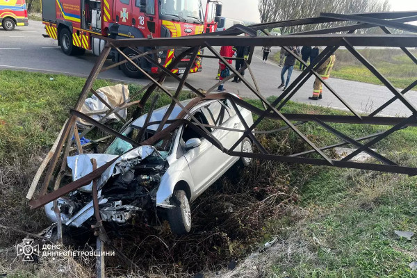 На Дніпропетровщині рятувальники визволили водія із понівеченого авто після зіткнення з електроопорою