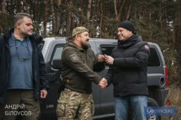 Представники міської влади Кам'янського і благодійного фонду «Осоння України» зустрілися з бійцями бойового підрозділу безпілотних систем 3-ї Окремої Штурмової Бригади (3-й Армійський Корпус) і передади їм позашляховик Hummer.