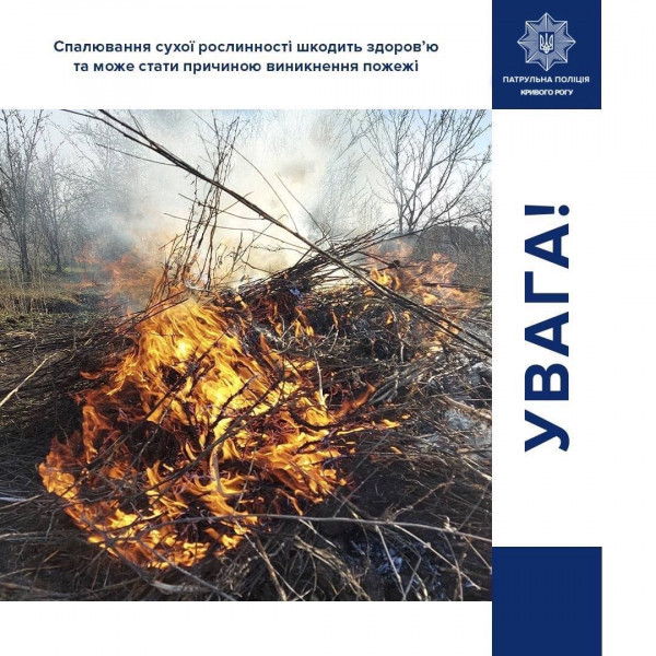 Не паліть суху траву та листя — це небезпечно для здоров'я та карається законом