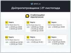Дніпропетровщина: графіки відключень електроенергії на 27 листопада