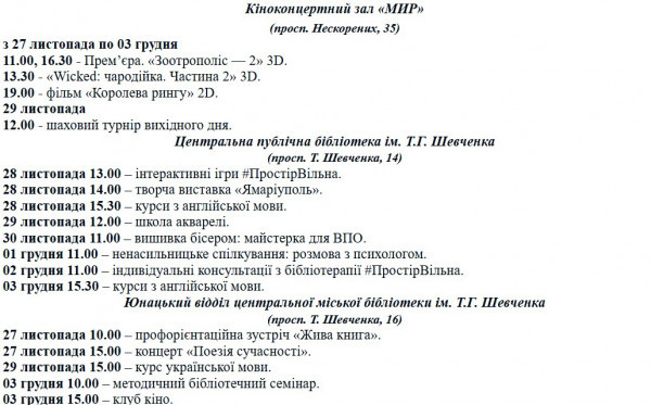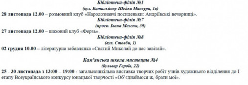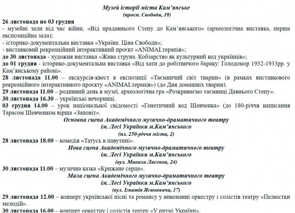 Куди піти у Кам’янському: програма заходів з 27 листопада по 3 грудня