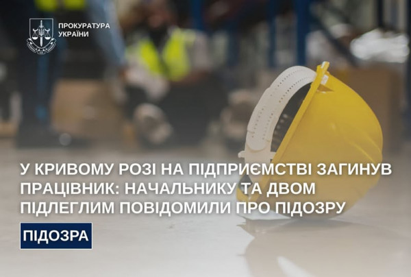 На Дніпропетровщині за загибель працівника на робочому місці повідомили про підозру начальнику і двом його підлеглим