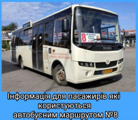 До уваги пасажирів, що користуються автобусним маршрутом №8.