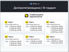 На Дніпропетровщині оновлено графіки відключень електоренергії на 10 грудня