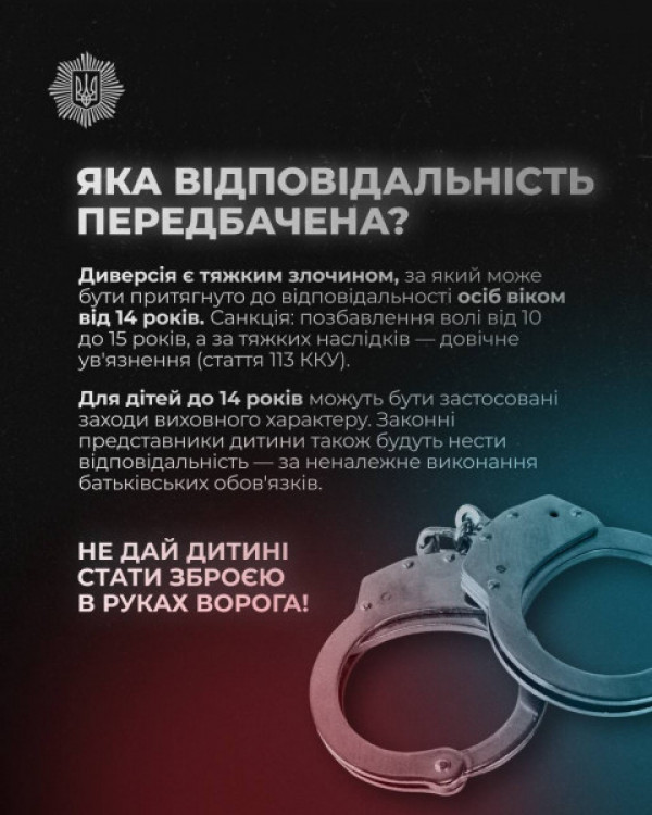 Батькам підлітків: як вберегти українських дітей від хибного шляху щодо скоєння диверсій за «легкі гроші» від російських спецслужбистів