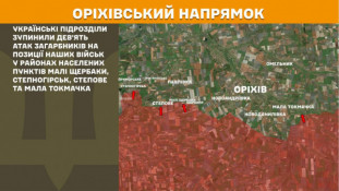 На Оріхівському напрямку українські підрозділи зупинили дев’ять атак загарбників на позиції наших військ у районах населених пунктів Малі Щербаки, Степногірськ, Степове та Мала Токмачка.