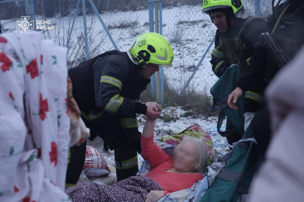 Рятувальники оперативно ліквідовують пожежі, розбирають завали. Поліція та ДСНС евакуювали з геріатричного пансіонату в Дарницькому районі 68 людей.