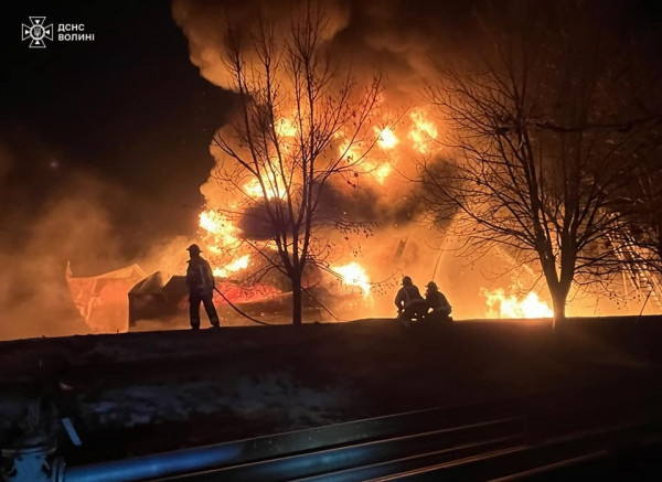 У Луцьку та Ковельському районі Волинської області сталися пожежі. Через наліт дронів, що атакували об'єкти критичної інфраструктури, понад 103 тис осель залишилися без світла