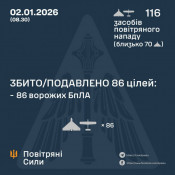 У ніч на 02 січня окупанти атакували Україну 116 - ма ударними БпЛА типу Shahed, Гербера і безпілотниками інших типів, близько 70 із них – "шахеди".
