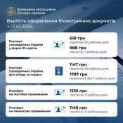 Закордонний паспорт: 1147 грн (термін до 20 днів) або 1787 грн (термін до 7 днів).