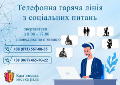 Мешканцям Кам’янської міської територіальної громади та внутрішньо переміщеним особам нагадують, що у місті продовжує працювати телефонна гаряча лінія з соціальних питань.