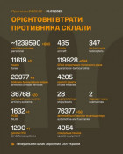Загальні бойові втрати противника з 24.02.22 по 31.01.26 орієнтовно склали: