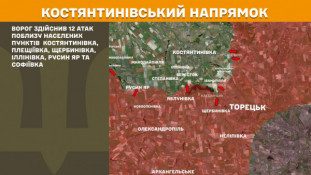 На Костянтинівському напрямку ворог здійснив 12 атак поблизу населених пунктів Костянтинівка, Плещіївка, Щербинівка, Іллінівка, Русин Яр та Софіївка.
