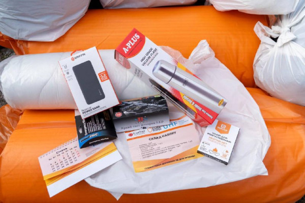 До наборів входять спальні мішки, термоковдри, павербанки, термоси, ліхтарики, переносні плити з пальниками та інші речі першої необхідності.