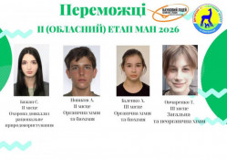 ІІІ місце – Тихон Овчаренко, гурток “Юний хімік”, керівники Андрій Анацький та Юлія Кострюкова.