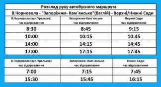 У зв’язку з цим із 21 березня у місті відновив роботу сезонний автобусний маршрут «вул. В’ячеслава Чорновола — ст. Запоріжжя-Кам’янське — Верхні сади / Нижні сади».