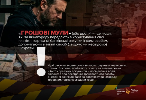Головний сервісний центр МВС та Кіберполіція застерігають: не передавайте свої банківські картки та рахунки «в оренду».