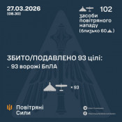 У ніч на 27 березня російські війська здійснили масштабну атаку по Україні, застосувавши 102 ударні безпілотники різних типів. Серед них — дрони-камікадзе Shahed, а також БпЛА «Гербера» та «Італмас». Запуски здійснювалися з території рф та тимчасово окупованого Криму.