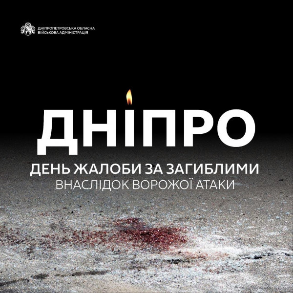У Дніпрі оголосили день жалоби за загиблими внаслідок російського ракетного удару по місту.