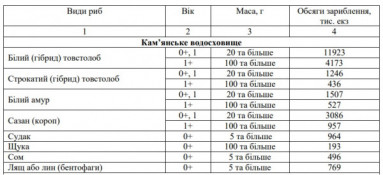 - вересень-листопад: зариблення цьоголітками (0+) та дволітками (1+).