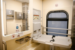 У кожному купе є шахова дошка, а на верхніх полицях — індивідуальні столики з місцем для напоїв.